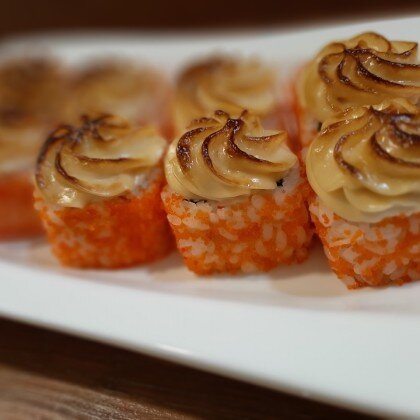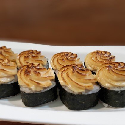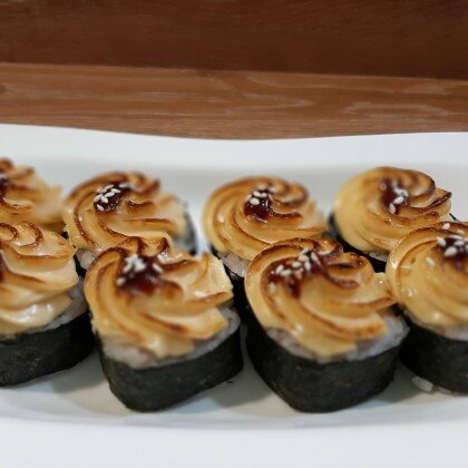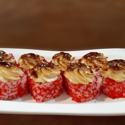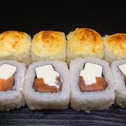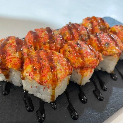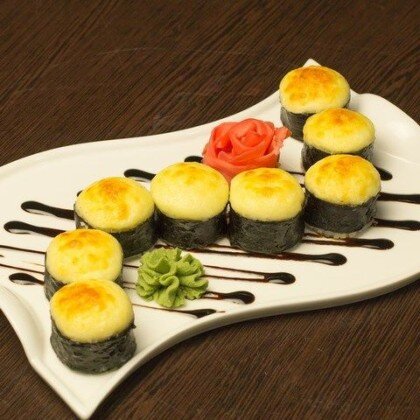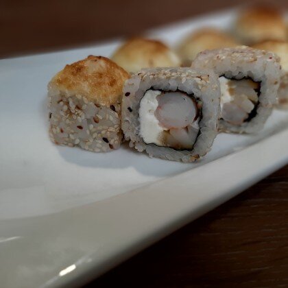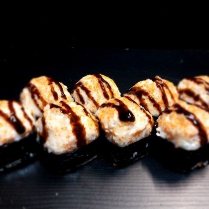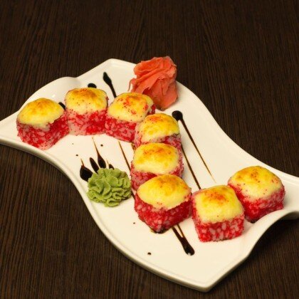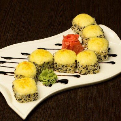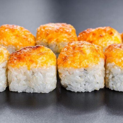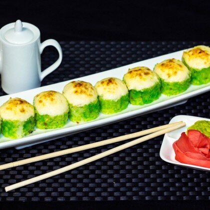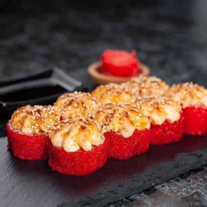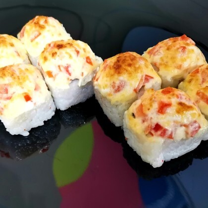 Рис, крем-краб, огурец, сыр моцарелла, икра масаго,