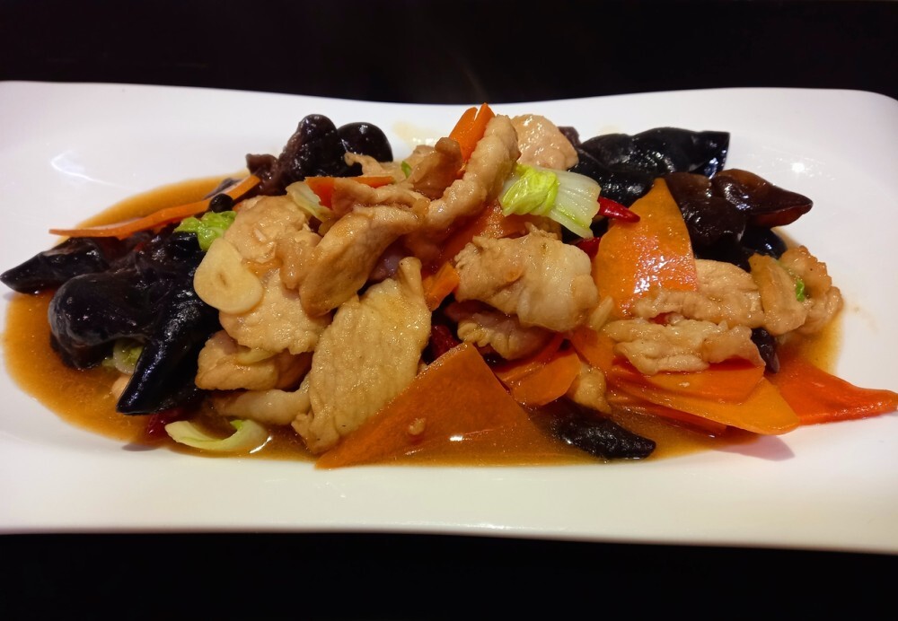 Свинина, морковь, пекинская капуста, древесные грибы, чеснок, острый красный перец.