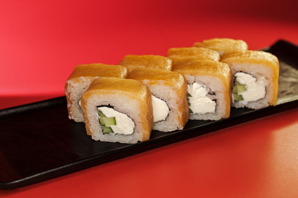Пожалуй. самый популярный ролл. с огурчиком. сливочным сыром, обёрнутый в слабосолёный лосось